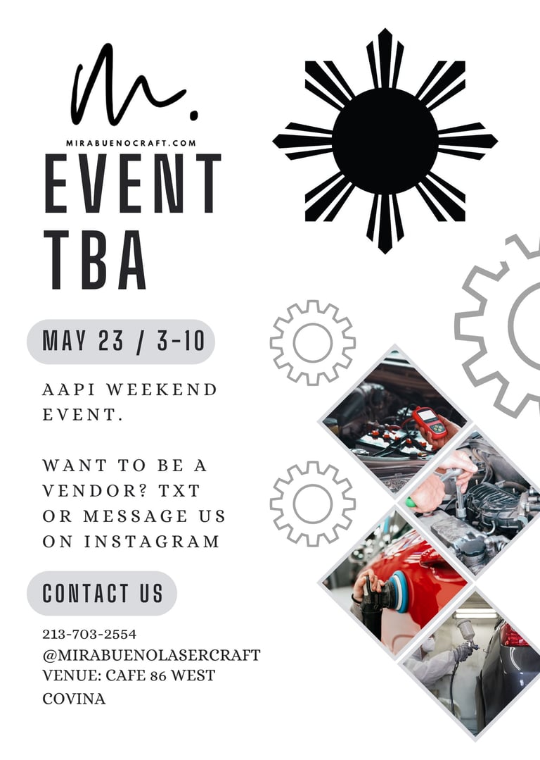 If you want to be a vendor at this event, please message me on my IG at mirabuenolasercraft or text me. Spaces are almost filled.
